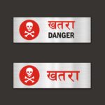 Danger Hindi and English Combo sign board Pack of 2 | Silver Color 2mm Thickness | 12 x 4 inches. Easy installation : Double Side Tape at Backside Material: Vinyl, Acrylic Thickness: 2 mm Dimension (Width X Height ) : 30 cm x 10 cm, High Water Resistant. Acrylic Sign Boards for offices, showrooms, shops, malls, clinics, Factories,warehouse, apartments, showrooms etc. High Quality warning Emergency Signboards.