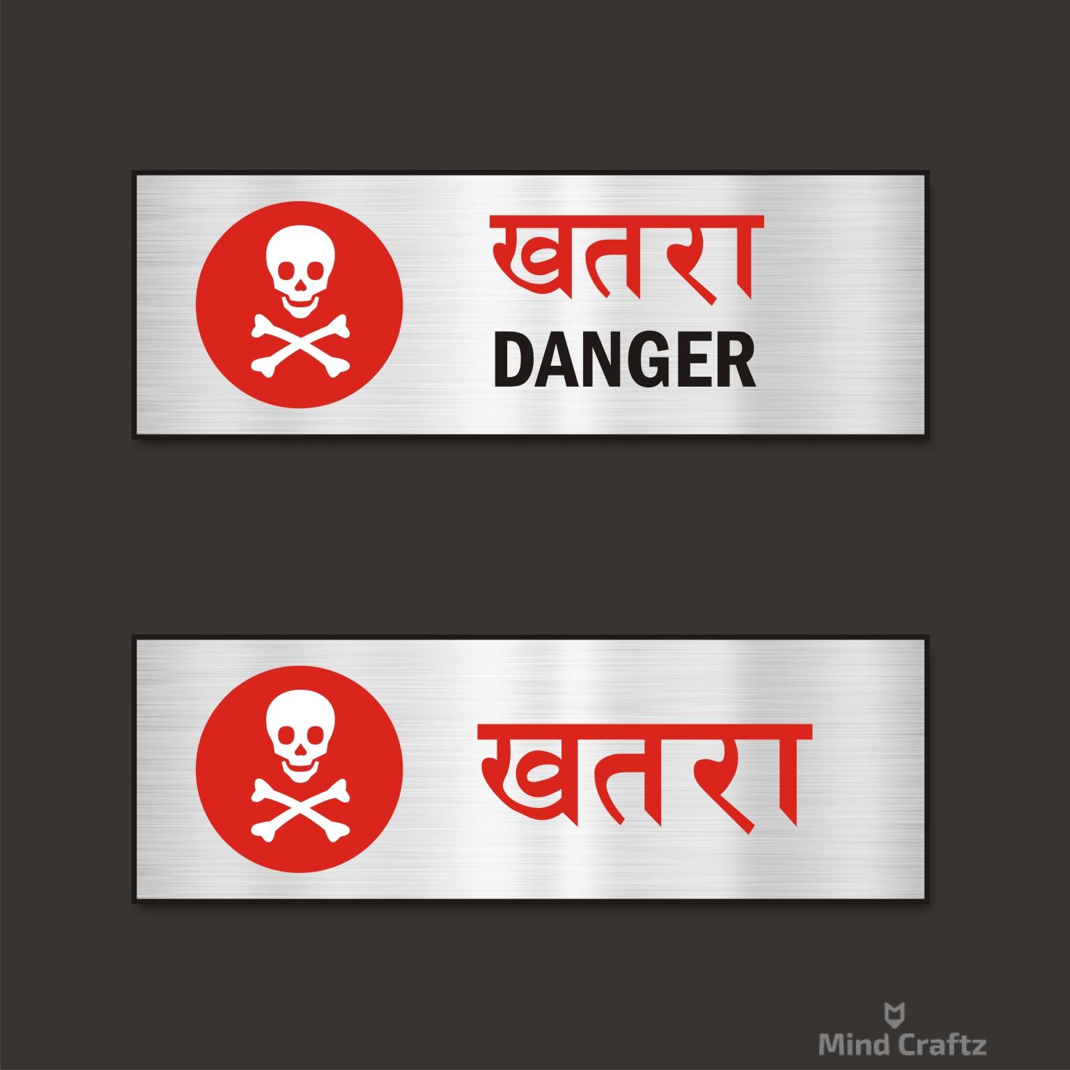 Danger Hindi and English Combo sign board Pack of 2 | Silver Color 2mm Thickness | 12 x 4 inches