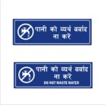 Do Not waste water Acrylic Sign Board combo Blue Color 12 x 4 inches 2mm thick Pack of 2 Hindi English . Easy installation : Double Side Tape at Backside Material: Vinyl, Acrylic Thickness: 2 mm High Water Resistant. Acrylic Sign Boards for offices, showrooms, shops, malls, clinics, Factories,warehouse, apartments, Godowns, Stairs, Lobby, Halls, showrooms etc. High Quality warning Emergency Signboards.