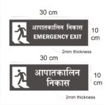 Emergency Exit Combo Hindi and English Sign Board Pack of 2 |Silver Color 2mm Thickness | 12 x 4 inches