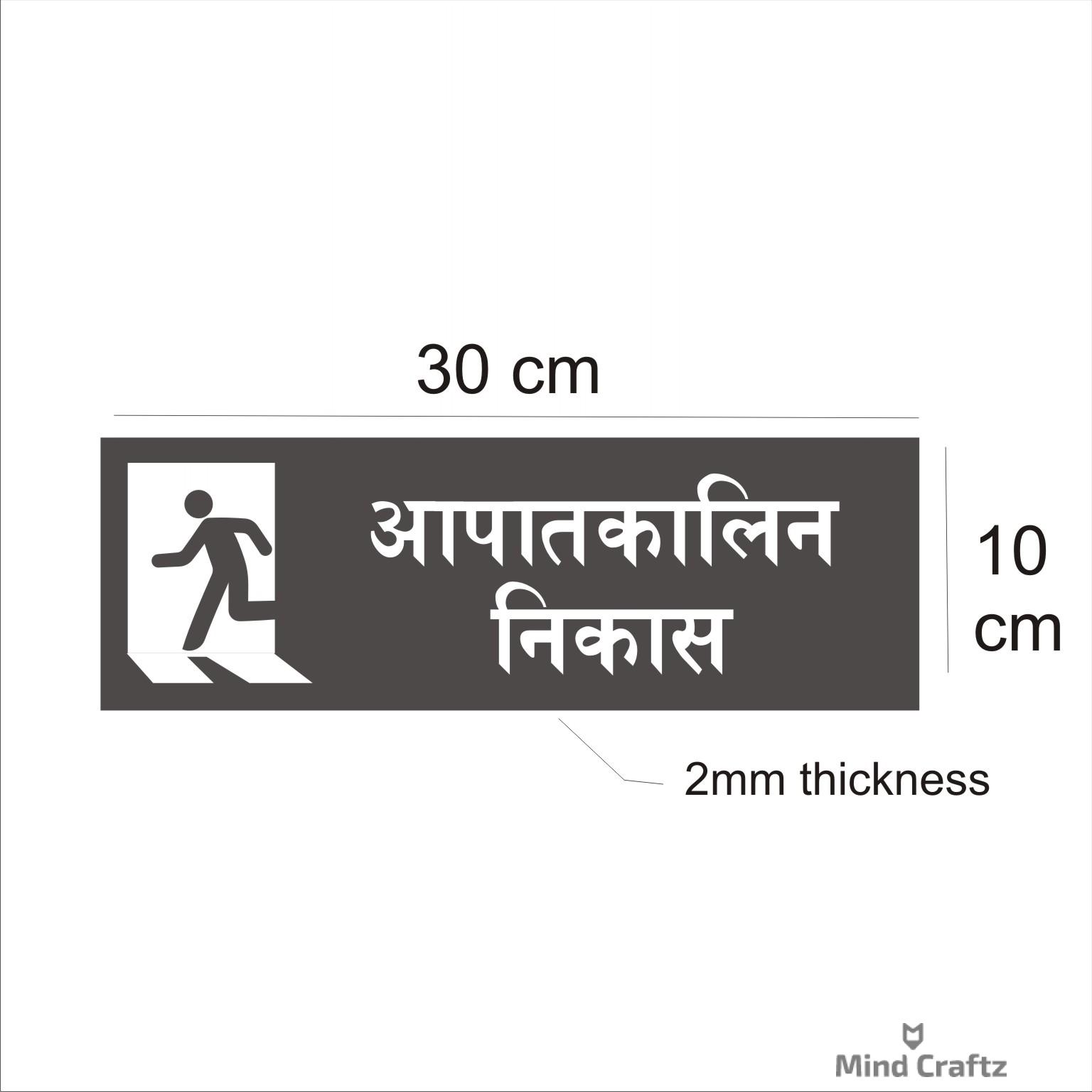 Emergency Exit Hindi Sign Board Pack of 1 | Silver Color 2mm Thickness | 12 x 4 inches. Easy installation : Double Side Tape at Backside Material: Vinyl, Acrylic Thickness: 2 mm Dimension (Width X Height ) : 30 cm x 10 cm, High Water Resistant. Acrylic Sign Boards for offices, showrooms, shops, malls, clinics, Factories,warehouse, apartments, showrooms etc. High Quality warning Emergency Signboards.