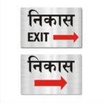Exit Right Hindi and English Acrylic Sign Board Combo Silver Color | 12 x 8 inches | 2mm Thickness – Pack of 2 . Attractive color Hindi Signboards Easy Installation: Double Tape a Back side. High Water Resistant. Suitable for Office, Building, apartments, Hotels, Restaurants, shops, Godowns, Lodge, Schools, Colleges, Paying Guest, Hostels etc.