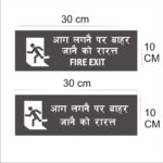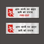 Fire Exit Emergency Hindi and English Combo Acrylic Sign Board Silver Color | 12 x 4 inches | 2mm Thickness – 2 Pieces. Attractive color Hindi Signboards Easy Installation: Double Tape a Back side. High Water Resistant. Suitable for Office, Building, apartments, Hotels, Restaurants, shops, Godowns, Lodge, Schools, Colleges, Paying Guest, Hostels etc.