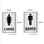 Ladies and Gents Acrylic Sign Board Combo Silver Color 12 x 8 inches 2mm thick Pack of 2 English