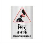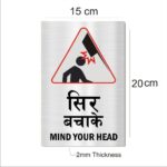 Mind Your Head Acrylic Sign Board Single Silver Color 8 x 6 inches 2mm thick Pack of 1 Hindi English
