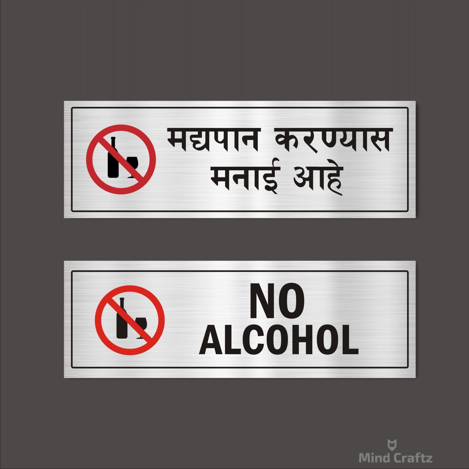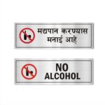 No Alchol Combo Silver Color Acrylic Sign Board 12 x 4 inches Pack of 2