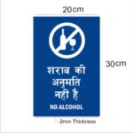 No Alcohol Acrylic Sign Board Single Blue Color 12 x 8 inches 2mm thick Pack of 1 Hindi English