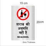 No Alcohol Acrylic Sign Board Single Silver Color 8 x 6 inches 2mm thick Pack of 1 Hindi English