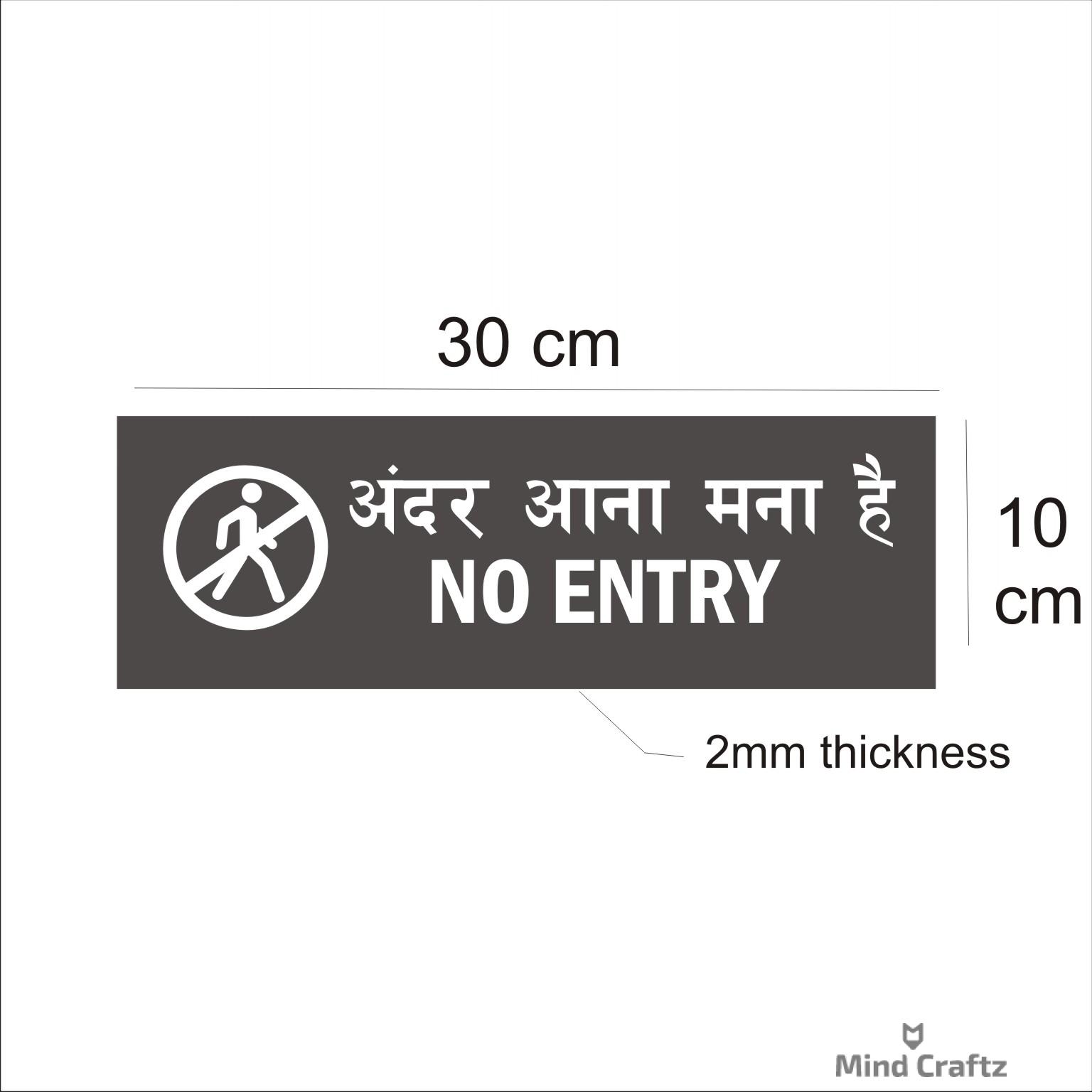 No Entry Hindi and English Sign Board Pack of 1 | Red Color 2mm Thickness | 12 x 4 inches. Easy installation : Double Side Tape at Backside Material: Vinyl, Acrylic Thickness: 2 mm Dimension (Width X Height ) : 30 cm x 10 cm, High Water Resistant. Acrylic Sign Boards for offices, showrooms, shops, malls, clinics, Factories,warehouse, apartments, showrooms etc. High Quality warning Emergency Signboards.
