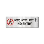 No Entry Hindi and English Sign Board Pack of 1 | Silver Color 2mm Thickness | 12 x 4 inches. Easy installation : Double Side Tape at Backside Material: Vinyl, Acrylic Thickness: 2 mm Dimension (Width X Height ) : 30 cm x 10 cm, High Water Resistant. Acrylic Sign Boards for offices, showrooms, shops, malls, clinics, Factories,warehouse, apartments, showrooms etc. High Quality warning Emergency Signboards.