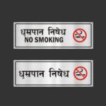 No Smoking Acrylic Sign Board combo Silver Color 12 x 4 inches 2mm thick Pack of 2 Hindi English . Easy installation : Double Side Tape at Backside Material: Vinyl, Acrylic Thickness: 2 mm High Water Resistant. Acrylic Sign Boards for offices, showrooms, shops, malls, clinics, Factories,warehouse, apartments, Godowns, Stairs, Lobby, Halls, showrooms etc. High Quality warning Emergency Signboards.