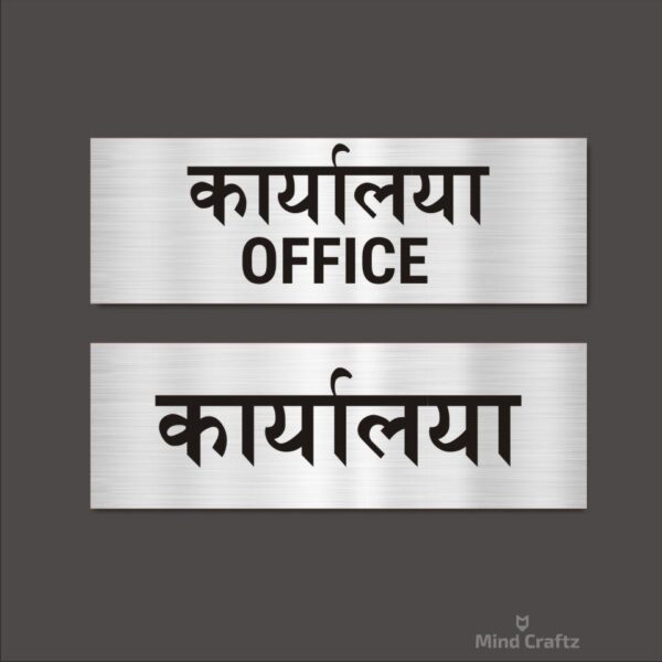 Office – karyalaya Signboard Silver color 12 x 4 inches | 2mm thickness | Pack of 2