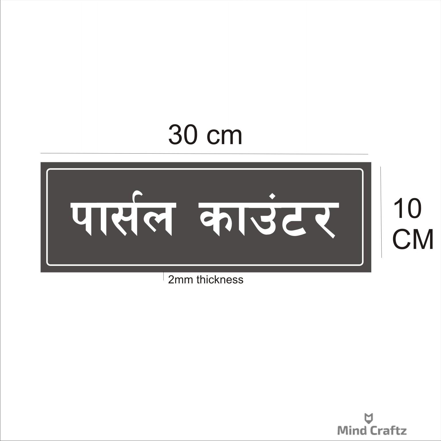 Parcel Counter Hindi Sign Board Pack of 1 | Silver Color 2mm Thickness | 12 x 4 inches