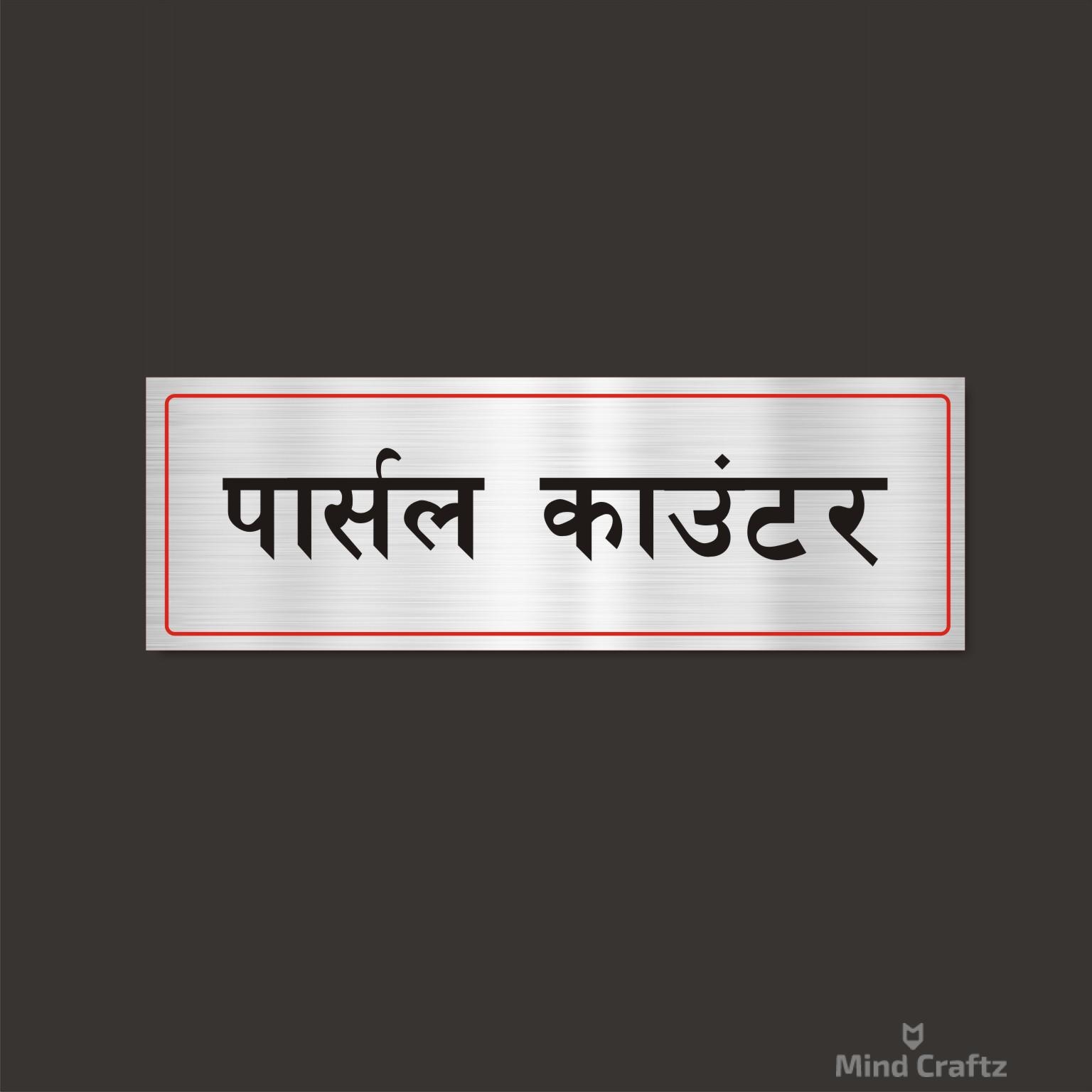 Be the first to review “Parcel Counter Hindi Sign Board Silver Color”