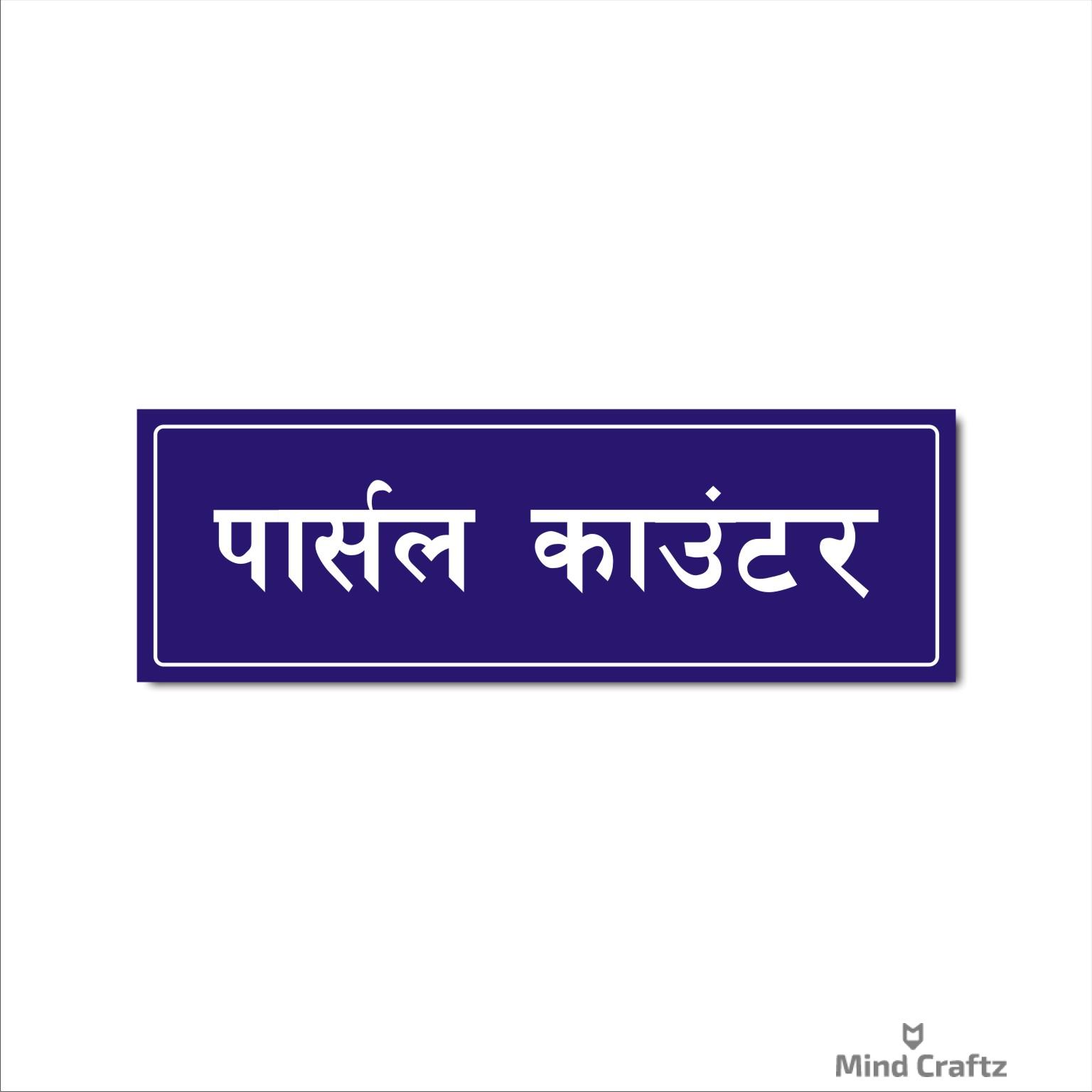 Parcel Counter Hindi Sign Board Pack of 1 | Violet/ Purple Color 2mm Thickness | 12 x 4 inches. Easy installation : Double Side Tape at Backside Material: Vinyl, Acrylic Thickness: 2 mm Dimension (Width X Height ) : 30 cm x 10 cm, High Water Resistant. Acrylic Sign Boards for offices, showrooms, shops, malls, clinics, Factories,warehouse, apartments, showrooms etc. High Quality warning Emergency Signboards.