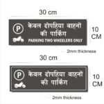 Parking Two Wheelers Only Combo Hindi and English Sign Board Pack of 2 | Green Color 2mm Thickness | 12 x 4 inches. Easy installation : Double Side Tape at Backside Material: Vinyl, Acrylic Thickness: 2 mm Dimension (Width X Height ) : 30 cm x 10 cm, High Water Resistant. Acrylic Sign Boards for offices, showrooms, shops, malls, clinics, Factories,warehouse, apartments, showrooms etc. High Quality warning Emergency Signboards.