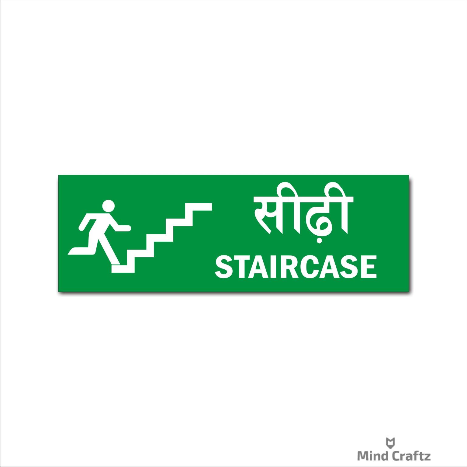 Staircase Hindi and English Acrylic Sign Board Green Color