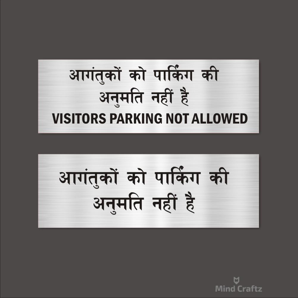 Visitors Parking Not Allowed Hindi and English Combo Acrylic Sign Board Silver Color