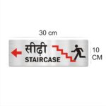 Staircase Left Arrow Hindi and English Acrylic Sign Board Silver Color | 12 x 4 inches | 2mm Thickness – 1 Piece. Attractive color Hindi Signboards Easy Installation: Double Tape a Back side. High Water Resistant. Suitable for Office, Building, apartments, Hotels, Restaurants, shops, Godowns, Lodge, Schools, Colleges, Paying Guest, Hostels etc.