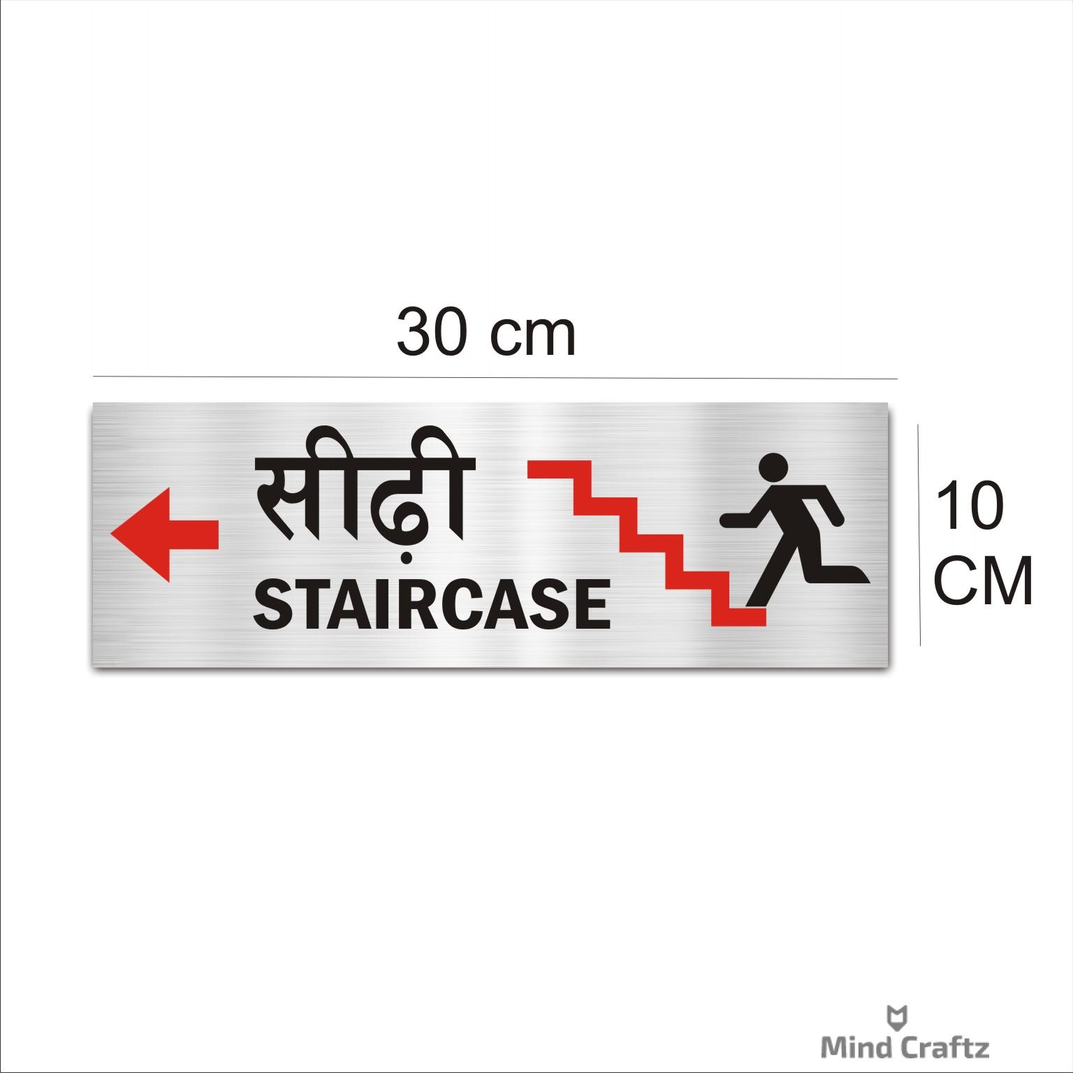 Staircase Left Arrow Hindi and English Acrylic Sign Board Silver Color
