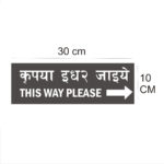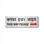 This Way Please Right Arrow Hindi and English Acrylic Sign Board Silver color | 12 x 4 inches 2mm thick – 1 Piece. Attractive color Hindi Signboards Easy Installation: Double Tape a Back side. High Water Resistant. Suitable for Office, Building, apartments, Hotels, Restaurants, shops, Godowns, Lodge, Schools, Colleges, Paying Guest, Hostels etc.