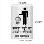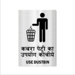 Use Dustbin Acrylic Sign Board Single Silver Color 8 x 6 inches 2mm thick Pack of 1 Hindi English
