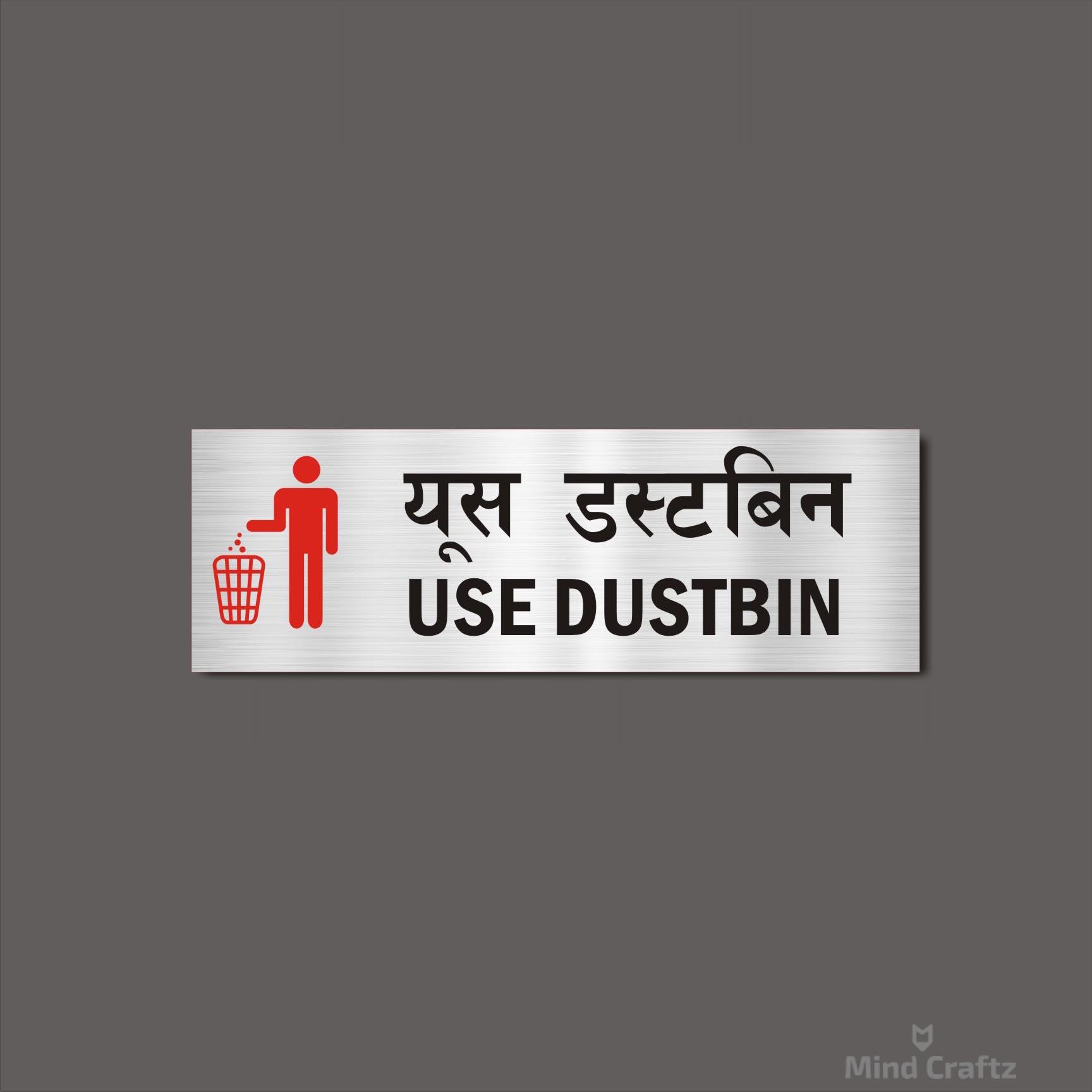 Use Dustbin Combo Hindi and English Sign Board Silver Color