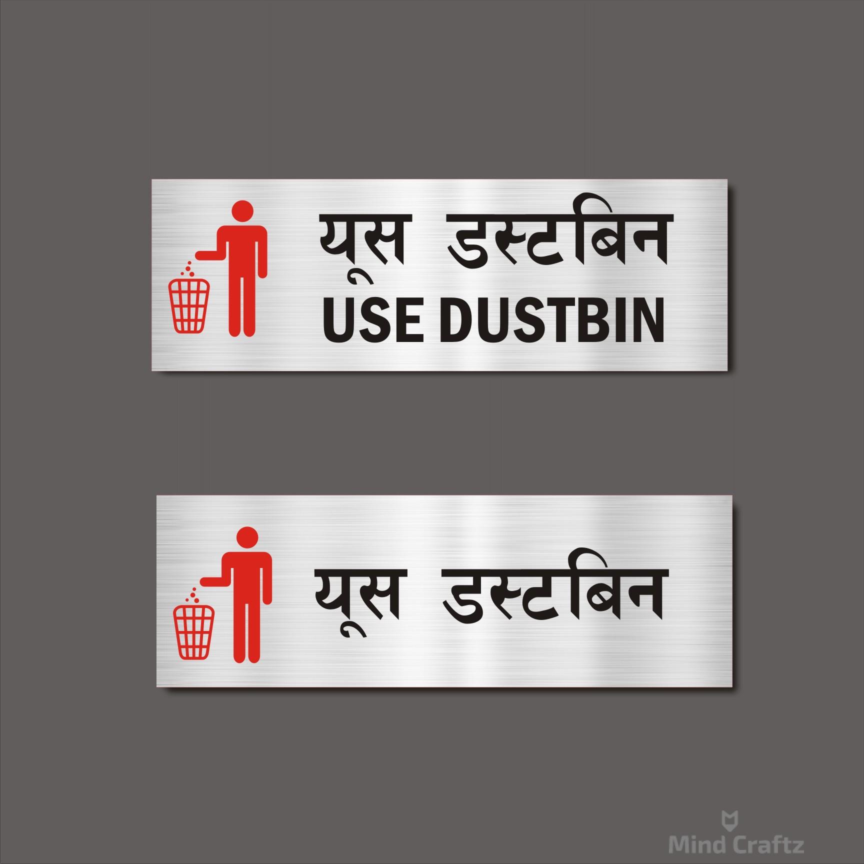 Use Dustbin Combo Hindi and English Sign Board Silver Color