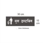 Use Dustbin Hindi Sign Board Pack of 1 | Violet Color 2mm Thickness | 12 x 4 inches. Easy installation : Double Side Tape at Backside Material: Vinyl, Acrylic Thickness: 2 mm Dimension (Width X Height ) : 30 cm x 10 cm, High Water Resistant. Acrylic Sign Boards for offices, showrooms, shops, malls, clinics, Factories,warehouse, apartments, showrooms etc. High Quality warning Emergency Signboards.