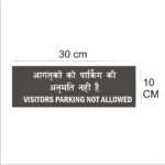 Visitors Parking Not Allowed Hindi and English Acrylic Sign Board Red Color | 12 x 4 inches | 2mm Thickness – 1 Piece. Attractive color Hindi Signboards Easy Installation: Double Tape a Back side. High Water Resistant. Suitable for Office, Building, apartments, Hotels, Restaurants, shops, Godowns, Lodge, Schools, Colleges, Paying Guest, Hostels etc.
