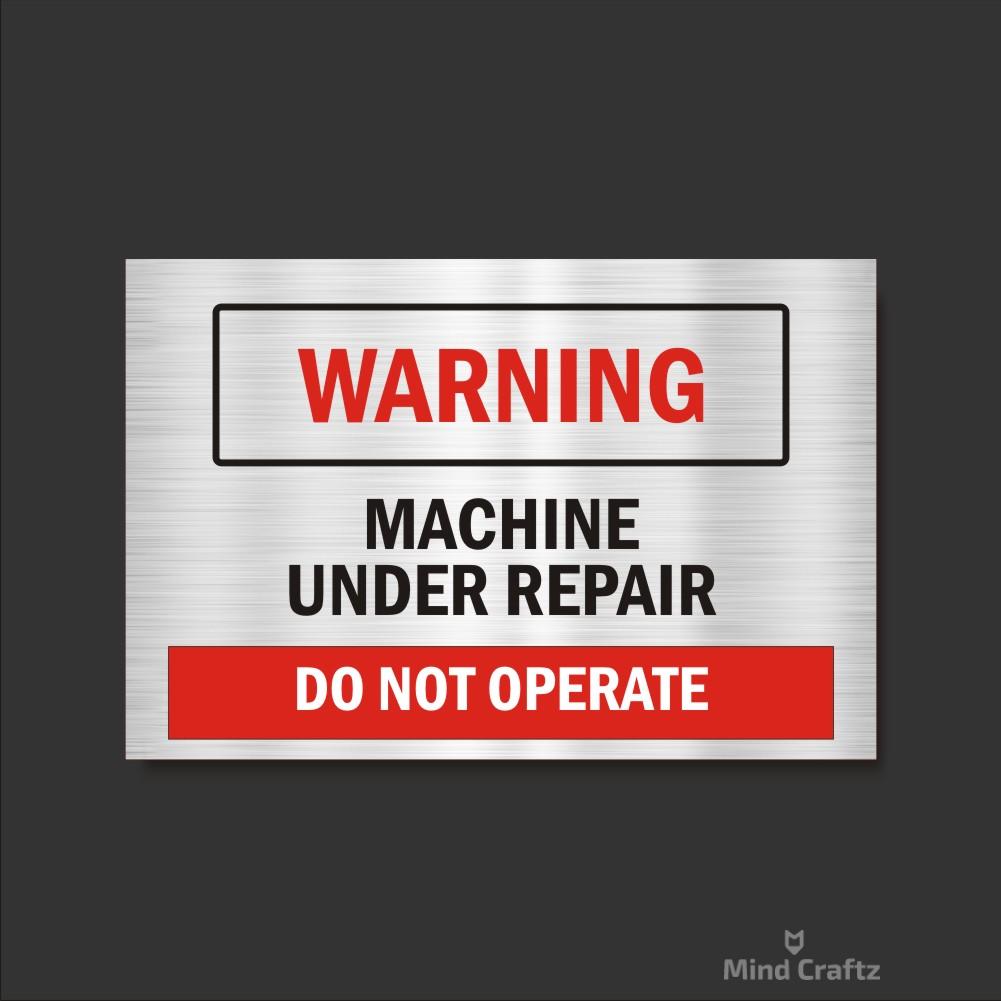 Warning Machine Under Repair Do not Operate Acrylic Sign Board Single Silver Color 12 x 8 inches 2mm thick Pack of 1 English . Easy installation : Double Side Tape at Backside Material: Vinyl, Acrylic Thickness: 2 mm High Water Resistant. Acrylic Sign Boards for offices, showrooms, shops, malls, clinics, Factories,warehouse, apartments, Godowns, Stairs, Lobby, Halls, showrooms etc. High Quality warning Emergency Signboards.
