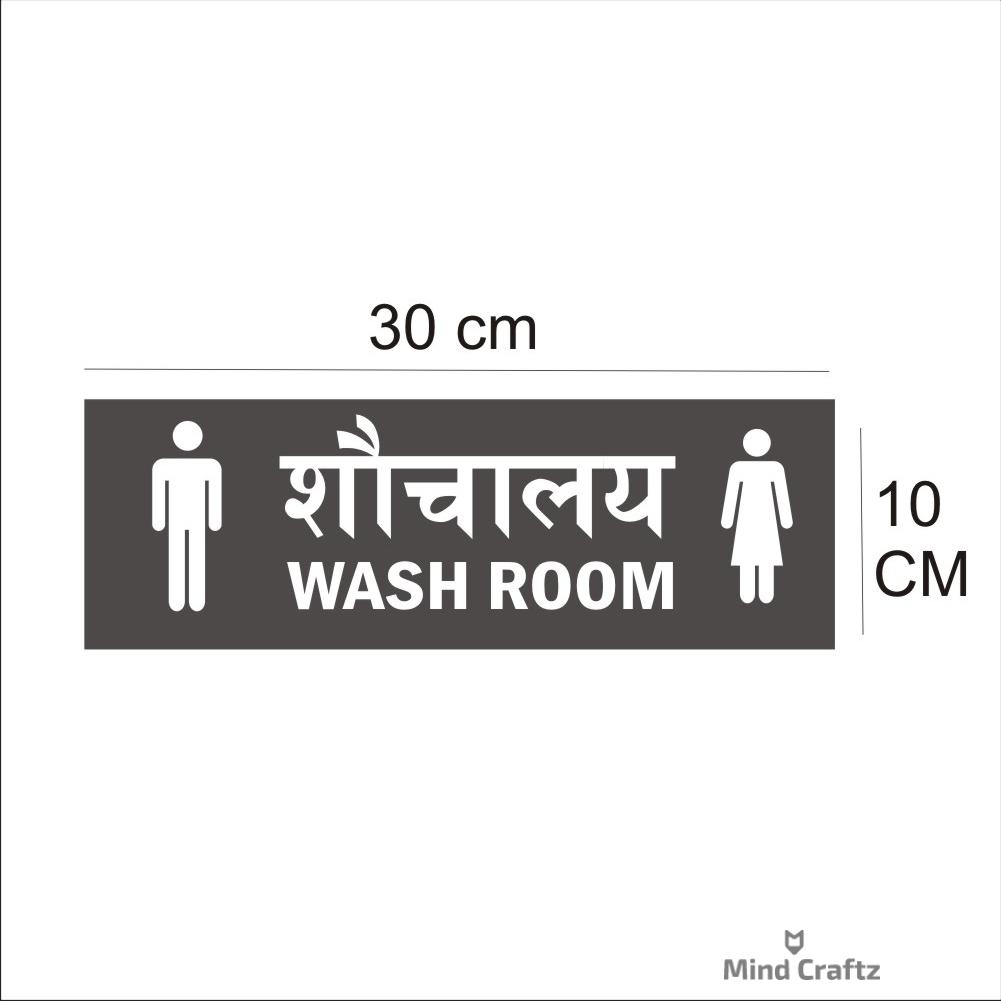 Wash Room Hindi and English Acrylic Sign Board Silver Color | 12 x 4 inches | 2mm Thickness – 1 Piece. Attractive color Hindi Signboards Easy Installation: Double Tape a Back side. High Water Resistant. Suitable for Office, Building, apartments, Hotels, Restaurants, shops, Godowns, Lodge, Schools, Colleges, Paying Guest, Hostels etc.