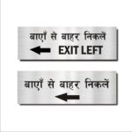 Exit left Hindi Signboard Silver color 12 x 4 inches | 2mm thickness | Pack of 2