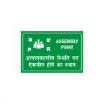 Assembly point Hindi and english Self Adhesive Sticker Green Color