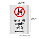 No Alcohol Acrylic Sign Board Single Silver Color 12 x 8 inches 2mm thick Pack of 1 Hindi English