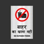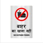 No Outside Food Acrylic Sign Board Single Silver Color 8 x 6 inches 2mm thick Pack of 1 Hindi English